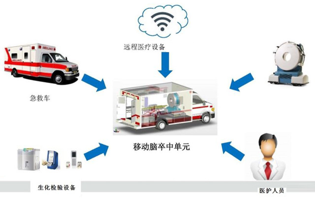 卒中脑中风脑卒中MR救护车上进行诊断开展治疗