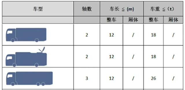 后桥为双轴的,整车长多在12米以内,厢体长10米左右,整车重不得超26吨。