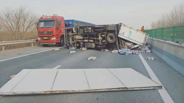 货车侧翻事故,车内货物散落一地。货车车厢解体了,货物撒满了高速公路上。紧急救援车马上到现场处置,占用两条行车道。民警立即在现场做好预警,引导后方车辆有序通行。原来是货车长时间没有去保养,在高速公路上行驶时候突破爆胎。司机操作不当,突发情况刹车了猛打方向盘,这样导致货车失控货车车厢解体了。因此,及时学习做好信息安全管理防护并报警,驾驶前应及时检查车辆的轮胎磨损情况,应当抓稳方向盘缓慢刹车,胎压是否正常,防止爆胎。发生重大事故后切忌猛踩刹车系统以及急打方向,将损失风险降到最低。尽量将事故车辆停在紧急停车带或路肩,货车需要定期保养,正确驾驶。