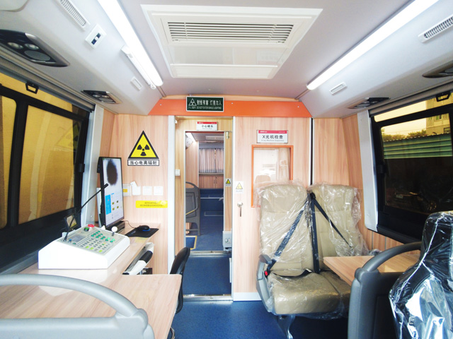 职业病体检车还为广大企业提供体检,诊疗和工伤救急服务。驶入了各单位,足不出户就可以享受到体检服务。深入企业进行职业病健康知识的培训。普及到企业的一线增强职业病安全防护意识。完成企业各类接触职业危害职业健康检查和团体健康体检服务。从内科、外科等专科方面进行健康体检,包括心率、血压、心电图、胸部正位片、纯听力检测、肺功能及血、尿常规等项目。职业病体检车配置DR设备,彩超,核磁共振,CT机,肠胃镜心电图等医疗设备。提供上门体检服务。体检过程中一用一消毒,床单一用一换。