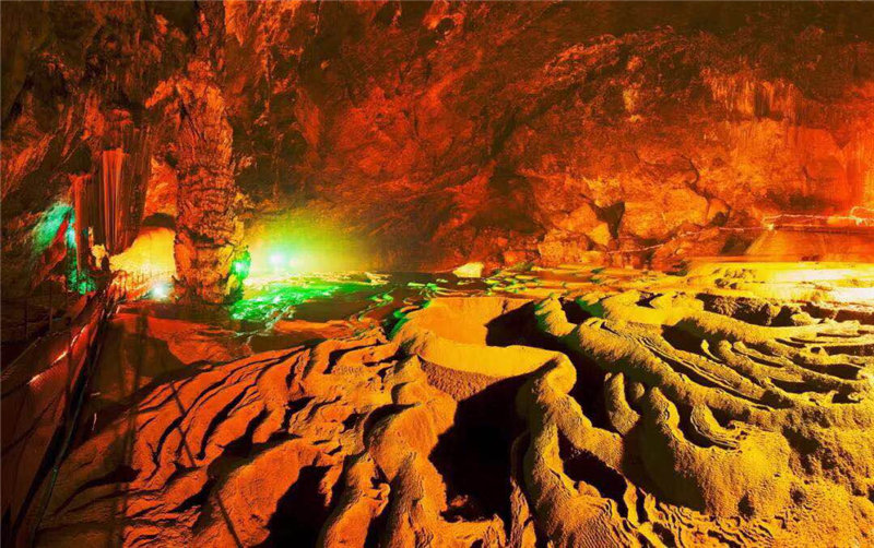 进入黄仙洞后,只见洞内奇石异景、百态纷呈,特别是2万平米的边石池、形似梯田,是黄仙洞最具特色的地方,大家被眼前的景观深深吸引,情不自禁折服于大自然的鬼斧神工。