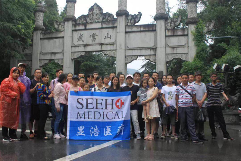 第二天我们来到位于十堰的道教圣地武当山,武当山山峰林立,其中天柱峰海拔1612米,高耸入云,举目望去、众峰拱卫、形成了“七十二峰朝大顶”的壮观景象。一行人兴致勃勃地游览了太子坡、南岩宫、紫霄殿,最后向金顶冲刺。一路上,路险坡徒,极大地消耗了大家的体力,同事们互相鼓励,努力向前,携手到达金顶。金顶之上白云飘飘、清风阵阵,极目远眺,正如诗圣杜甫在《望岳》中描述的“荡胸生层云、一览众山小”, 让人心旷神怡、逸兴遄飞。