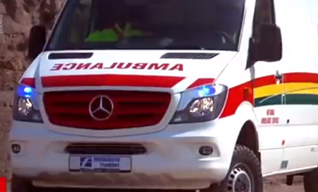 奔驰 SPRINTER VS30 越野救护车,德国制造的多功能快速车辆。用于快速穿越困难地形。并且安全的将病人转运到医院。6.1米的长度容量3名乘客和一名病人REPU卫生部的国家救护车服务中心建造。供非洲使用拥有完整的医疗设备,摄像系统和360度外部照明系统。搭载了一台163马力的发动机最高时速可以达到160公里每小时。