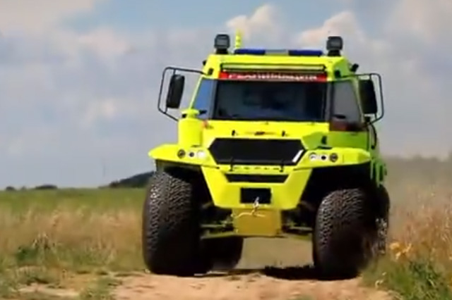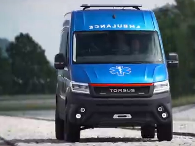 TORSUS TERRASTORM,捷克共和国制造的快速高机动性的车辆,它设计是用于道路的崎岖山区使用。可以有水或者泥泞的地形下面穿越危险区域。可以安全到达偏远地区把病人送到医院救治。车辆长6米,总重量有3.5吨。搭载了176马力的发动机。扭矩410牛米,配备自恢复绞盘。穿越80厘米深的区域,续航里程830公里。