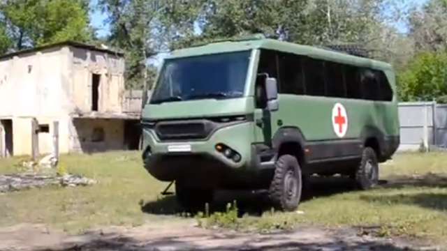 Shaman-M,这是一款俄罗斯制造的大容量两栖车辆,可以在偏远地区雪地沼泽中航行。车辆长6.3米,重达到4.8吨。可以运送2名患者和4名医生。车内的医疗设备齐全,保温隔音。续航里程1000公里,最大载重1.5吨。搭载了146马力的发动机陆地最高时速70公里每小时。水中最高时速7公里每小时。