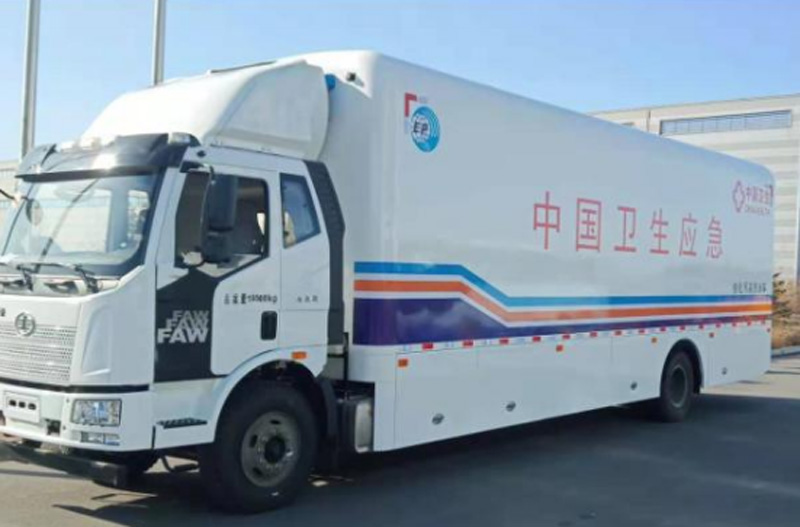 ky体育网页入口登录核化污染洗消车应运而生,该款车具有多系统高度集成、全天候机动响应、水电自我保障等突出优点。该车辆满载87吨,扩展后的工作空间长达15米,宽7米,高5米,能有效防止交叉污染,最大程度地保障伤病员和救援人员的生命健康安全。传统国内外洗消作业以公众洗消帐篷为主,存在自身防污去污难、功能单一、智能化水平不高等问题。ky体育网页入口登录研制的多功能核化污染洗消车,提供了突击处置、智能洗消等功能为一体的化学事故洗消处置技术装备保障,可第一时间快速进入污染区,完成应急处置和人员救助。