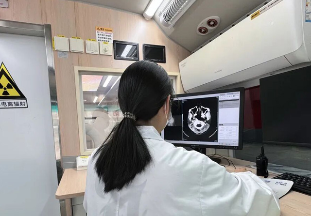 1.患者进入移动CT车进行筛查,由医院医师操作CT机为患者检测;