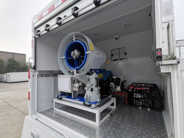 防疫消杀车穿梭各个居民小区,地下停车场,学校,工厂等多地地方,所到之处全面消杀不留死角。专业的防疫设备,防疫消杀车罐体有效容积大,一次作业周期长,工作效率高自带发电机,有喷雾灵活机动,可以覆盖更广的射程。特别是相比传统的人工防疫消杀更专业不漏任何位置。特别是阴暗地方和不方便人工作业的场地开展。全面、细致地消杀。消杀车的自动化喷洒大大降低了环卫工的劳动作业强度,并限度的减少身体与的消毒水的接触,可以让工作人员的身体更健康。为了确保消毒没有死角,消毒队使用防疫扑杀车配备的小型喷雾器,配合人工操作,对细菌、蚊子易滋生的地区进行了全方位消毒。利用防疫消杀车高效能作用,防止疾病传播,最大限度地降低疾病发生发展风险。